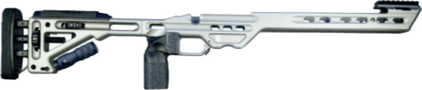 The chassis is machined on CNC Horizontal Machining Centers to exacting tolerances from 6061 aluminum. The MPA produced buttstock includes an adjustable length of pull, recoil pad with height and cant adjustment, adjustable cheek riser and adjustable monopod (monopod replaced with bag rider on Competition model).